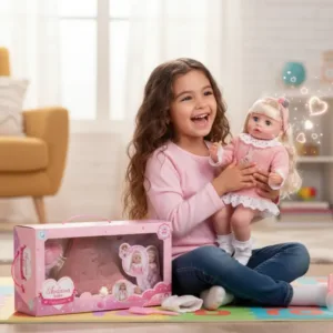 Diseñada para estimular el juego de roles maternal, Ardana Baby permite que las niñas experimenten el cuidado de un bebé de forma segura y divertida. Viene equipada con accesorios esenciales como biberón para “alimentarla”, pañal para cambiarla y cepillo para peinar su largo cabello, creando una experiencia completa de cuidado infantil.