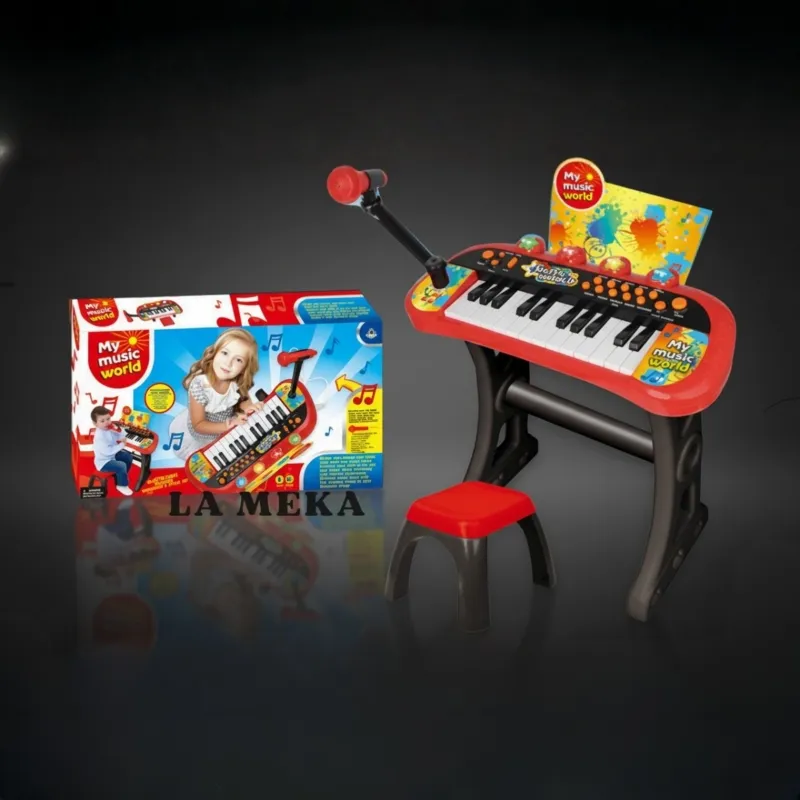 Piano Electrónico Infantil My Music World – Set Completo con Teclado, Mueble, Banquito y Micrófono 🎹🎤🎵 Centro musical interactivo con múltiples modos, canciones pregrabadas, luces LED y control de volumen y tempo. Incluye atril para partituras. Ideal para pequeños músicos desde 3 años. Calidad y respaldo de Distribuidores La Meka.