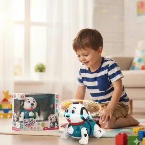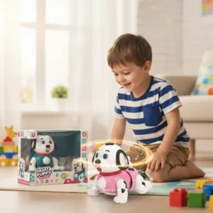El Robot Perro Gateador con Control 🐶💫 es la mascota interactiva perfecta para los más pequeños de la casa. Este adorable perrito estilo dálmata con grandes ojos azules expresivos y simpáticas manchitas negras, cobra vida cuando lo paseas, imitando los movimientos de un cachorro real que gatea y explora su entorno.